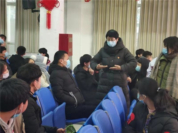 活動開始前,支部全體黨員同志提前來到康復(fù)樓三樓多媒體會議室,組織學(xué)生有序進(jìn)場,要求學(xué)生按照疫情防控要求間隔就坐并佩戴口罩。