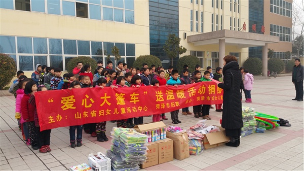 12月28日,菏澤市婦聯(lián)“愛(ài)心大蓬車”再次來(lái)到市特教中心,向這里的盲聾啞學(xué)生捐獻(xiàn)了生活學(xué)習(xí)用品和體育用品等一大宗,表達(dá)了濃濃的關(guān)愛(ài)情。市婦聯(lián)領(lǐng)導(dǎo)在講話中對(duì)同學(xué)們寄于殷切希望.