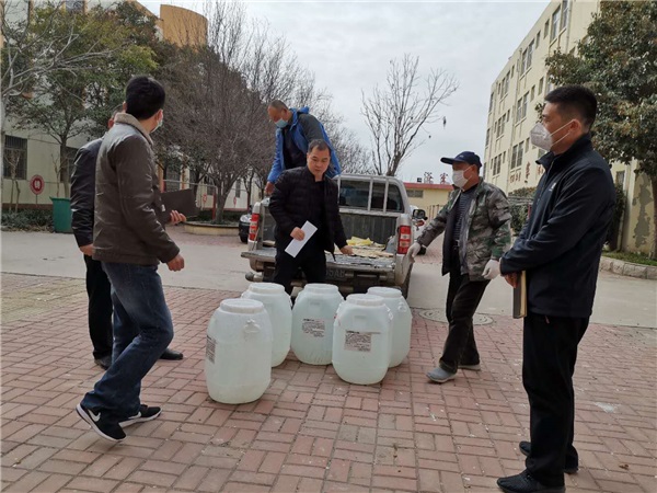在舉國(guó)上下抗擊新冠肺炎疫情的關(guān)鍵時(shí)期,疫情牽動(dòng)著每一個(gè)人的心。2020年3月4日下午,山東民泰消毒服務(wù)有限公司為市特殊教育中心送來(lái)了5桶(計(jì)500斤)三氯異氰脲酸10%溶液,助力學(xué)??箵粢咔?。學(xué)校副校長(zhǎng)祝曉娟、姜士標(biāo)及總務(wù)處主任董濤代表學(xué)校對(duì)山東民泰消毒服務(wù)有限公司的熱心、愛心和善舉深表感謝,并接受了捐贈(zèng)。