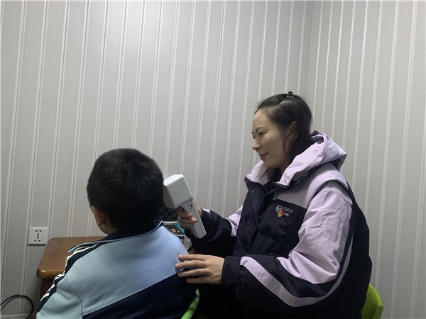 為了保護(hù)聽障兒童殘余聽力,達(dá)到更好的助聽效果,康復(fù)部教師為聾部學(xué)生檢測聽力并建檔立案。測聽結(jié)束后,教師們又利用專業(yè)儀器設(shè)備對孩子們的耳內(nèi)進(jìn)行了進(jìn)一步檢查。檢查發(fā)現(xiàn),由于長期配戴助聽器且沒有做好消毒,部分孩子的耳內(nèi)出現(xiàn)紅腫、化膿等情況,志愿者及時與其班主任溝通,提出調(diào)整保養(yǎng)措施及注意耳部衛(wèi)生建議。