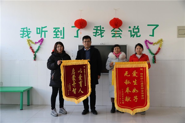兩位小朋友的家長分別制作了錦旗,來表達(dá)對學(xué)校、對老師的感謝。第二黨支部書記、副校長王懷寧同志