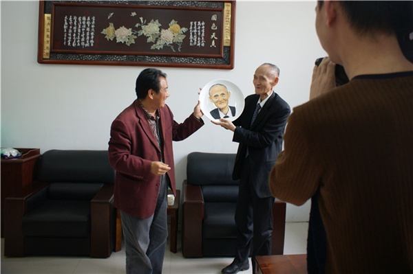 高先生一行五人在山東衛(wèi)視、遼寧衛(wèi)視等媒體記者的陪同下,時隔兩年后再次走進菏澤市特教中心,看望全校師生。高老先生在座談會上專心聽取了市特教中心校長毛丕顯同志的基本情況介紹,詳細(xì)地詢問了學(xué)校的辦學(xué)格局和發(fā)展情況,他關(guān)切地問毛校長,學(xué)生的生活怎么樣、學(xué)習(xí)怎么樣,學(xué)生最需要什么樣的幫助?辦學(xué)中遇到了什么困難,最大的障礙是什么?老師數(shù)量夠不夠等。毛校長一一做了細(xì)致回答。高先生表示他會繼續(xù)關(guān)注學(xué)校的發(fā)展,繼續(xù)向殘疾學(xué)生奉獻(xiàn)愛心。隨后,毛校長向高先生贈送了由本校職業(yè)班學(xué)生專門為他刻制的帶有高先生肖像的瓷盤,以表達(dá)對高先生的敬意和感謝。高先生高興地接受了,并熱情地邀請學(xué)校刻瓷指導(dǎo)老師合影留念。