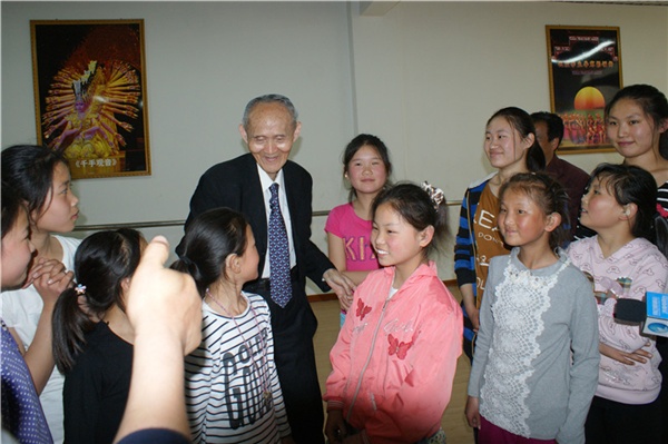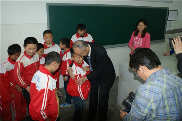 座談會結(jié)束后,在學(xué)校領(lǐng)導(dǎo)的陪同下,高先生興致勃勃地來到了師生中間,仔細(xì)地詢問孩子們的學(xué)習(xí)、生活和課外活動情況。當(dāng)高先生走進舞蹈訓(xùn)練室時,孩子們圍攏過來,在手語老師的幫助下聽高老講他過去的故事。高先生用他自身曲折的經(jīng)歷告訴聾啞孩子要不怕困難和挫折,要更加堅強起來,追求更加美好的未來。當(dāng)高先生來到盲部三年級教室時,正值課間休息,孩子們一聽高爺爺來啦,紛紛從外面跑回來,熱情地向高爺爺問好,并祝高爺爺健康長壽,膽大的盲孩子還好奇地摸摸高爺爺?shù)哪樋纯锤郀敔旈L什么樣。高老彎下腰親切地?fù)е⒆觽儞崦⒆觽兊念^,鼓勵孩子們要好好學(xué)習(xí),不斷地說著“高爺爺愛你們”、“高爺爺愛你們”。高老看著這么懂事的孩子,直夸老師教育得好,當(dāng)老師的不容易很辛苦,并給了班主任老師一個親切地?fù)肀А?br /> 快樂的時光總是很短暫,在孩子們的歡送掌聲中高先生又將踏上他倔強的愛心之旅,他給師生們留下了感恩、奉獻(xiàn)和自強不息的精神食糧,留下了20萬的愛心承諾和一片濃濃的特教情懷。(圖/許獻(xiàn)剛)