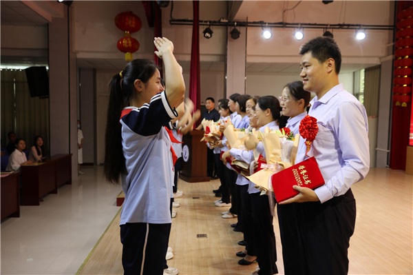 隨后,校長祝曉娟宣讀本次大會的表彰決定并為獲得魯西新區(qū)最美教師的黃保民以及優(yōu)秀教師、優(yōu)秀班主任和文明學(xué)科組頒發(fā)榮譽證書。在座的教師們用熱烈的掌聲向所有受表彰的同志表示祝賀,少先隊上臺為教師們送上了鮮艷的花束,教師姜辛雨代表優(yōu)秀教師發(fā)言。
