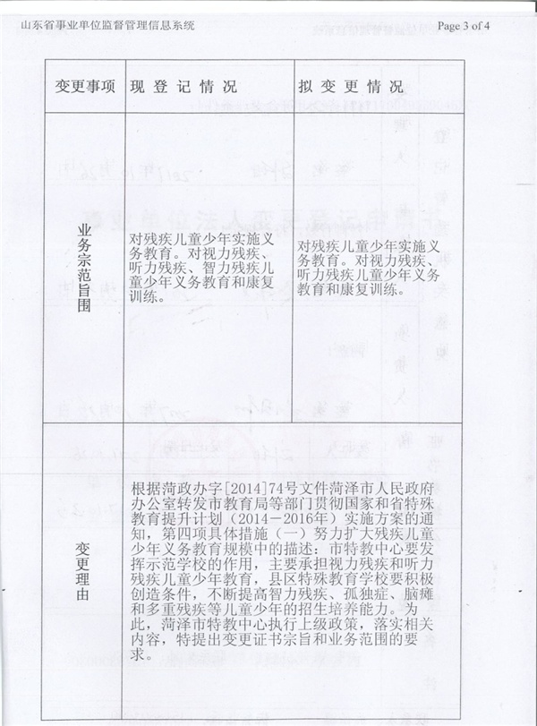 菏澤市特教中心關(guān)于變更法人證書宗旨和業(yè)務(wù)范圍的公告