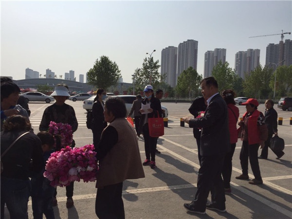 八點(diǎn)十分,志愿者們迎著和煦的陽光從學(xué)校出發(fā)來到曹州牡丹園東門口集合。首先,志愿者們對(duì)周圍的市民以及來觀賞牡丹的游客進(jìn)行“創(chuàng)建文明城市 做文明市民”活動(dòng)的宣傳。市民們及游客積極配合并耐心傾聽志愿者的講解,并做出回應(yīng):“你們?cè)趯W(xué)雷鋒,真是好樣的!”短短的一句話讓志愿者們心里暖暖的,更增加了動(dòng)力。然后,志愿者們拿著打掃工具,開始了清理衛(wèi)生的工作。他們認(rèn)真打掃衛(wèi)生,不怕臟,不怕累,不放過一絲細(xì)節(jié),把冬青叢中的白色垃圾用小木棍一點(diǎn)一點(diǎn)掏出來,并揀拾干凈,為文明菏澤的創(chuàng)建做出自己的貢獻(xiàn)。經(jīng)過兩個(gè)半小時(shí)的工作,牡丹園景區(qū)門口南北兩段約兩公里的路段被打掃干凈,曹州牡丹園東門口變得煥然一新。