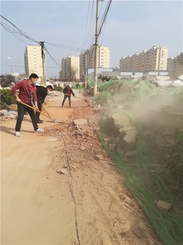 2018年3月26日,菏澤市特教中心“花都特教志愿服務(wù)隊”盲數(shù)學(xué)組不畏炎熱,來到趙水洼社區(qū)拆遷后廢墟里的小路,清理碎石、瓦礫、垃圾。