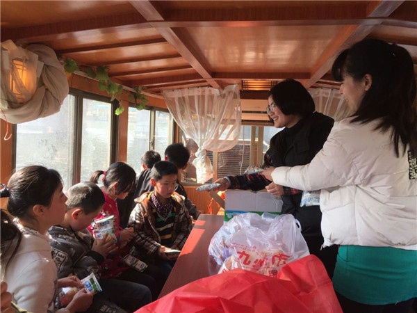 春游活動中,“花都特教志愿服務隊”藝體小組的教師志愿者們還自掏腰包為學生購買了牛奶、面包等食品,為他們補充體能。這些留守兒童高興地說,他們觸摸到了春天,感受到了春天的溫暖。(文/祝曉娟 許獻剛 圖/許獻剛)