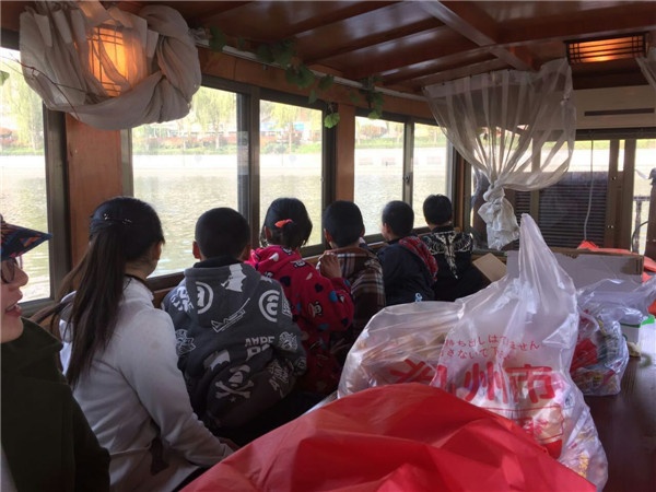 星期天,菏澤市特教中心“花都特教志愿服務隊”藝體小組的全體教師志愿者,帶領學校中的低視力留守兒童走出校園,感受春天的氣息。伴著和煦的春風,教師志愿者們師們手拉手領著留守兒童觸摸著公園里的一草一木,他們游覽了菏澤新天地公園,并乘坐了仿古游船。看到柳條兒伸出了長長的細枝,許多不知名的樹木冒出嫩黃的枝葉,聽到小鳥不時飛過頭頂時的清脆鳴叫聲,聞著空氣彌漫著泥土的清香,觸摸著花團簇擁的花枝,孩子們難以抑制心中的喜悅,不停的興奮的喊著“春天來了,春天來了”;第一次坐上公園里的游船,他們更是興奮不已,看著哪里都新鮮,摸著哪里都親切,一路上嘰嘰喳喳說笑不停。教師志愿者則利用共乘一船之機,和學生們親切的交談,對學生進行“三愛”教育,教導學生要愛學習、愛勞動、愛祖國,鼓勵學生將來做一個對社會、家庭都有用的人。