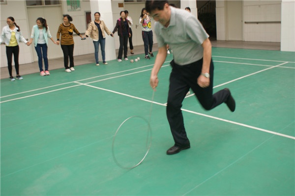 本次活動以現(xiàn)有學科組為基礎(chǔ)的6個工會小組為單位組成參賽隊,分別進行推鐵環(huán)接力比賽、扔沙包、穿越呼啦圈比賽。大家積極參與,現(xiàn)場氣氛熱烈,把整個活動推向高潮。經(jīng)過2個多小時緊張激烈角逐,首屆教職工娛樂性體育比賽在歡聲笑語中結(jié)束了。