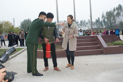 演練結(jié)束后,消防干警又為我校師生演示了滅火器的使用方法及注意事項。