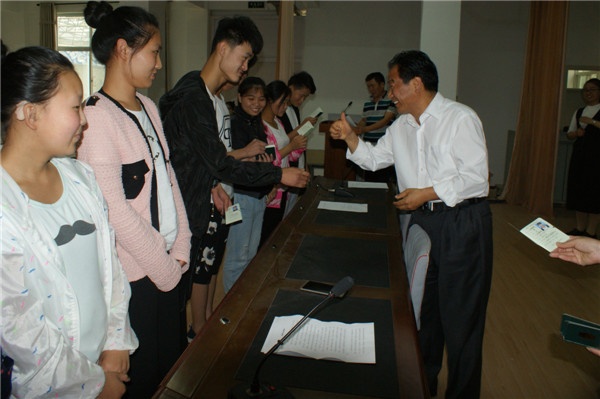 為進(jìn)一步加強(qiáng)學(xué)校團(tuán)組織建設(shè),學(xué)校團(tuán)支部本學(xué)期新發(fā)展了32名團(tuán)員,并于6月7日下午在學(xué)校多功能會(huì)議室舉行了學(xué)生入團(tuán)宣誓儀式。儀式上,學(xué)校領(lǐng)導(dǎo)為新入團(tuán)的團(tuán)員頒發(fā)了團(tuán)員證,老團(tuán)員為新團(tuán)員互相佩戴團(tuán)徽。面向團(tuán)旗,在領(lǐng)誓人的帶領(lǐng)下,全體團(tuán)員全向團(tuán)旗進(jìn)行莊嚴(yán)宣誓。接著,新團(tuán)員代表全體團(tuán)員進(jìn)行表態(tài)發(fā)言,決心用實(shí)際行來踐行入團(tuán)誓言,爭做一名合格團(tuán)員。老團(tuán)員代表也進(jìn)行了發(fā)言并對(duì)新團(tuán)員表示祝賀。最后,校黨支部書記兼校長毛丕顯同志寄語全體團(tuán)員一定要牢記入團(tuán)誓詞,以實(shí)際行動(dòng)來體現(xiàn)一個(gè)合格團(tuán)員的先進(jìn)性,不要辜負(fù)團(tuán)組織的培養(yǎng)和老師的教誨,在學(xué)習(xí)和生活中時(shí)時(shí)處處起模范帶頭作用,爭做文明學(xué)生,爭當(dāng)優(yōu)秀團(tuán)員?;顒?dòng)在團(tuán)歌中結(jié)束。