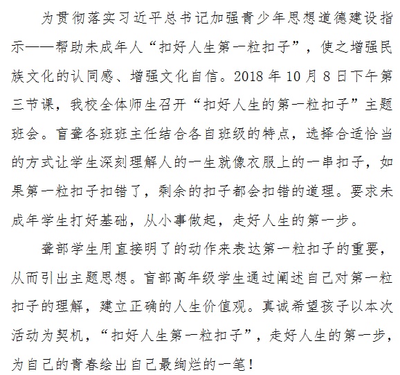 菏澤市特教中心開展“扣好人生的第一粒扣子”主題班會