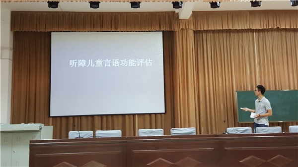 2016年5月26日,康復(fù)部的常衛(wèi)亞老師為全校老師帶來了關(guān)于聽障兒童言語功能評(píng)估方面的康復(fù)知識(shí)講座。本次講座主要圍繞呼吸功能評(píng)估、發(fā)聲功能評(píng)估、共鳴功能評(píng)估三大方面展開論述。講座過程中,主講老師聲音洪亮,通過對(duì)不同言語障礙類型的模仿示范發(fā)音,給全校教師留下了深刻印象,同時(shí)也加深了教師們對(duì)并不同言語障礙類型的了解。本次講座提高了教師們的康復(fù)知識(shí)水平,同時(shí)也體現(xiàn)了醫(yī)教結(jié)合的理念。(文/常衛(wèi)亞)