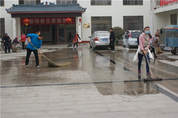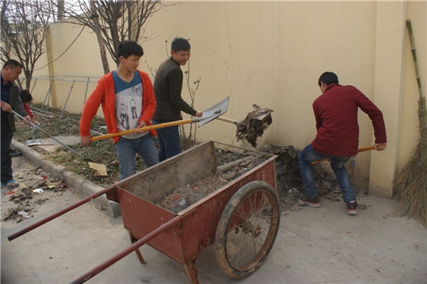 另一邊,參加街道清掃和打掃社區(qū)大隊(duì)部辦公大院的師生干得熱火朝天,在老師的帶動(dòng)下,師生共同清除大道綠化帶內(nèi)的雜物、樹枝、白色塑料袋等垃圾,幫助居民把磚塊、沙子等建筑材料規(guī)整好;在社區(qū)辦公院內(nèi),師生們拿起了拖把、擦布、大掃帚等把大院從里到外、從上到下,把整個(gè)三層樓里里外外打掃一遍,衛(wèi)生做得得徹徹底底,一塵不染,就連百余平的大院子也用臉盆接水沖洗了一遍。一下午的時(shí)間很快過去了,回頭看勞動(dòng)成果,師生共清掃街道約300平方米,清運(yùn)垃圾6大垃圾箱。按摩隊(duì)的師生一個(gè)下午按摩了將近30人次。收獲了村委會(huì)領(lǐng)導(dǎo)和居民的N次稱贊。