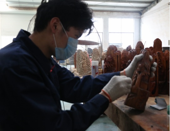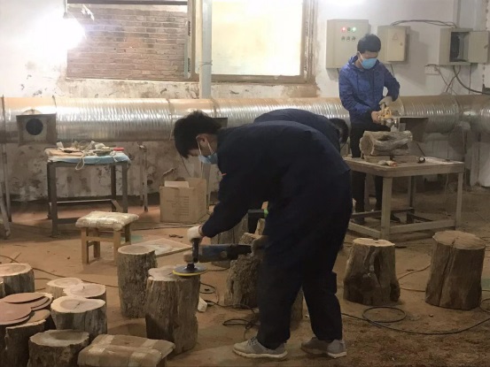 到達(dá)匠工木雕廠后,我們首先進(jìn)入的是學(xué)生們工作的地方,幾位學(xué)生正在認(rèn)真的工作。
