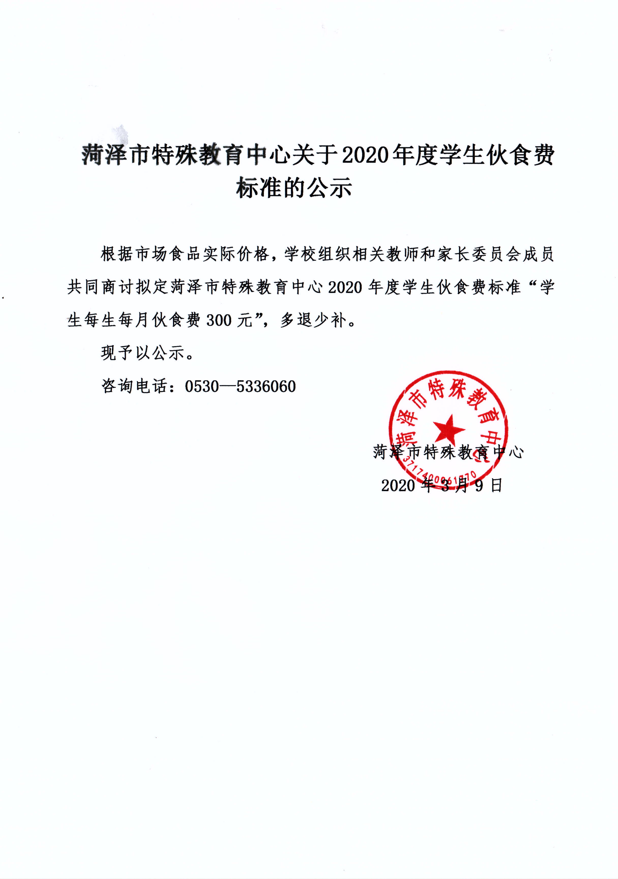 菏澤市特殊教育中心關(guān)于2020年度學(xué)生伙食費標(biāo)準(zhǔn)的公示
