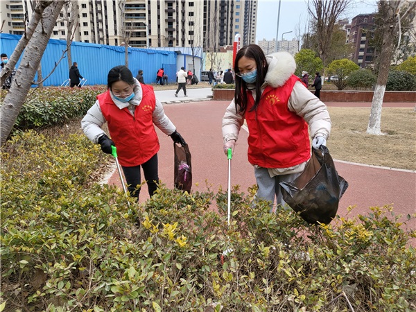 活動(dòng)開(kāi)始前,學(xué)校面向全體教職工招募志愿者,大家報(bào)名踴躍,參與活動(dòng)熱情度高?;顒?dòng)開(kāi)始,老師們身穿志愿者紅馬甲,手拿工具,來(lái)到了學(xué)校旁的公園。經(jīng)過(guò)一個(gè)寒假的時(shí)間,一眼望去,公園里存在很多亂丟的垃圾,極大地影響了公共場(chǎng)所的美觀。志愿者們拎著垃圾袋,認(rèn)真仔細(xì)地?fù)焓爸孛婧途G化帶中的煙頭、飲料蓋、廢紙屑、食品包裝袋等垃圾,不放過(guò)任何一個(gè)存在垃圾的角落。大家齊心協(xié)力,經(jīng)過(guò)一個(gè)多小時(shí)的整理,公園變得整潔干凈,垃圾被裝進(jìn)了一個(gè)又一個(gè)的黑色垃圾袋中,志愿者們笑稱“今天的收獲可不少!”。寒冷的天氣里,這一抹抹志愿紅溫暖了城市的角落。