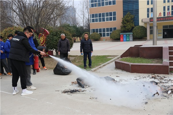 隨著一陣急促的警報聲,演練正式開始。老師們根據(jù)分工立即到達指定崗位引導學生們撤離,維護撤離秩序。各班任課老師帶領學生們用小毛巾或衣服捂住口鼻,俯著身子從教室逃離,沿著指定樓梯口快速前進。演練中,每位老師都認真負責,以最快速度有序地組織和帶領學生按照逃生路線疏散,撤離到學校操場的安全地帶。在到達集合地后,各班班主任及時清點本班人數(shù)并向報告,整個演練過程緊張有序。在活動現(xiàn)場,學校安全辦老師們還為師生講解并演示了滅火器正確使用方法,并現(xiàn)場指導學生和教師親身實踐使用滅火器滅火。