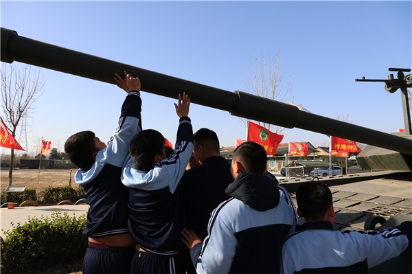 “這是大炮呀!”幾名視障部的同學(xué)用手緩緩地向前摸著面前的一個武器,只能從課本中聽到的詞真實的出現(xiàn)在身邊,讓大家驚嘆不已。根據(jù)學(xué)生實際情況,視障部的同學(xué)們以觸摸感知、聆聽講解為主。“這草鞋冬天穿肯定很冷啊,而且很硬,紅軍當時得多么難??!”同學(xué)們手中捧著的是紅軍長征時期所穿的草鞋,爬雪山過草地,這樣的一雙代表紅軍堅強意志的鞋。聽障部的同學(xué)們勇敢的翻越攀爬大網(wǎng)、闖過多個障礙區(qū),大家不時地用手語相互鼓勵。調(diào)整大炮的角度,嘗試武器的發(fā)射,感受輕、重型武器的發(fā)展……,同學(xué)們?nèi)叹劬珪竦伛雎牻坦俚闹v解,在教官的引導(dǎo)下,同學(xué)們沉浸式地進行體驗。各式各樣的武器裝備,讓同學(xué)們大開眼界;一段段艱苦的歷史,讓同學(xué)們銘記于心。