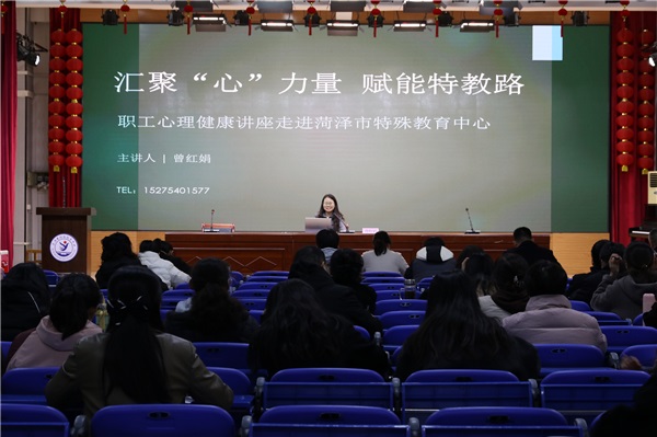 為進(jìn)一步關(guān)愛學(xué)校教師的心理健康,普及心理健康知識,提升教師的職業(yè)幸福感。11月22日,菏澤市特殊教育中心邀請菏澤市總工會職工心理健康團(tuán)隊(duì)負(fù)責(zé)人曾紅娟為全校教師舉辦了一場以“匯聚´心´力量 賦能特教路”為主題的心理健康專題講座。