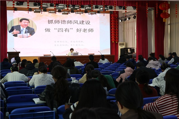 孔書記從師德師風(fēng)解讀、教師職業(yè)道德內(nèi)容、加強師德師風(fēng)建設(shè)以、當(dāng)前師德師風(fēng)存在的問題與挑戰(zhàn)以及學(xué)校師德師風(fēng)建設(shè)情況等幾個方面分別進(jìn)行了闡述。