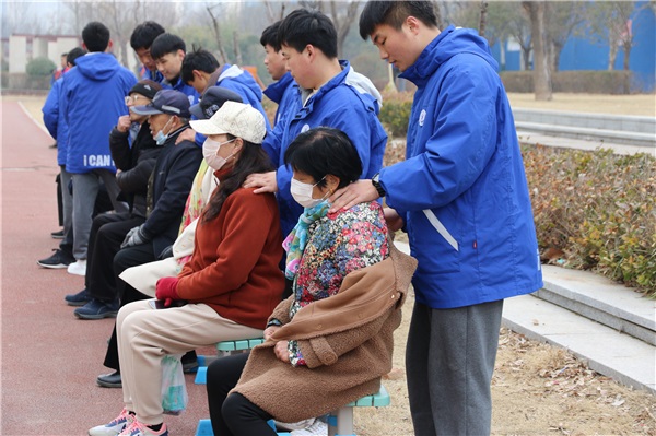 活動(dòng)中,學(xué)校視障部中職班的學(xué)生們來(lái)到了附近的公園中,大家擺好凳子,邀請(qǐng)來(lái)往的老年人作為體驗(yàn)者,為他們進(jìn)行按摩服務(wù),專業(yè)的手法獲得大家高度的贊賞。期間,學(xué)生們還為老人們介紹了一些中醫(yī)日常保健常識(shí),幫助大家樹(shù)立健康觀念。