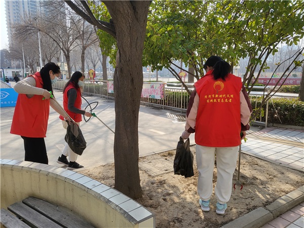 在“發(fā)揚志愿者精神 弘揚時代新風(fēng)”志愿服務(wù)活動中,志愿者們重點對校內(nèi)及校外翡翠公園周邊的環(huán)境衛(wèi)生進(jìn)行集中清理。每一位志愿者清理完自己所負(fù)責(zé)的區(qū)域以后,再針對嚴(yán)重臟亂差場地進(jìn)行集中攻堅,經(jīng)過大家的共同努力,校內(nèi)外的環(huán)境衛(wèi)生狀況已大有改善。除了垃圾清理,志愿者們還主動開展文明勸導(dǎo)活動,呼吁大家從自我做起,共同擔(dān)當(dāng)起“關(guān)愛自然 保護(hù)環(huán)境”的責(zé)任。