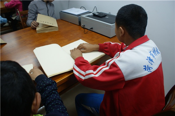 活動(dòng)當(dāng)天,一大早菏澤義工就組織了近30輛私家車,浩浩蕩蕩開赴了市特教中心,接上等候在校內(nèi)的百名師生,趕往市圖書館。市圖書館專門為市特教中心師生的到來開辟了綠色通道:提前打開員工通道,提供專門的停車場,有專人負(fù)責(zé)引領(lǐng)通過員工通道進(jìn)入報(bào)告大廳等,讓師生備受感動(dòng)。在市圖書館一樓報(bào)告大廳,市圖書館向特教中心捐贈(zèng)20個(gè)無障礙電影光盤供殘障學(xué)生在校內(nèi)觀看,市特教中心校長毛丕顯同志來到現(xiàn)場接受了捐贈(zèng)。隨后師生觀看了無障礙電影《大鬧天宮》,無障礙電影通過特殊技術(shù)處理,適合盲人、聾啞人等殘疾人士觀看。在放映現(xiàn)場,盲聾啞學(xué)生秩序井然、聚精會(huì)神地欣賞著影片,并被電影的故事情節(jié)所深深吸引。近2個(gè)小時(shí)電影放映結(jié)束后,師生們參觀了市圖書館。視障學(xué)生在圖書館工作人員和老師的帶領(lǐng)下,參觀了“光明之家·視障數(shù)字閱覽室“,他們發(fā)現(xiàn)閱覽室內(nèi)盲文書籍不僅涉及醫(yī)藥衛(wèi)生、政治法律、文化教育,還有語言文字、教材等,真正領(lǐng)略了市圖書館盲文藏書范圍之廣范。室內(nèi)還有盲用電腦、盲文刻印機(jī)、智能閱讀機(jī)、電子助視器、盲文寫板、輪椅等,師生不僅感嘆市圖書館資源之豐富、設(shè)備之齊全、環(huán)境之優(yōu)雅。另一邊,聽障學(xué)生在工作人員的引導(dǎo)下和手語老師的指示下參觀了市圖書館一至三樓的設(shè)施設(shè)備,體驗(yàn)了各個(gè)窗口的館藏圖書及服務(wù),并在一樓展廳流連忘返,駐足良久。
