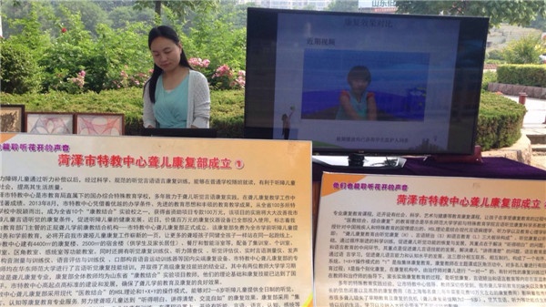 今年五月份的第三個(gè)星期天是第27個(gè)全國(guó)助殘日,菏澤市特教中心以向社會(huì)展示職教成果的方式慶祝助殘日的到來。活動(dòng)當(dāng)天,市特教中心在菏澤青啤廣場(chǎng)向社會(huì)展示了學(xué)校聾部職業(yè)教育方面的木雕、刻瓷、美術(shù)作品等,同時(shí)盲部師生還以按摩的方式為過往市民免費(fèi)服務(wù)、展示盲部職業(yè)教育特色。另外,學(xué)??祻?fù)部的師生也來到了活動(dòng)現(xiàn)場(chǎng),他們向社會(huì)展示了本校學(xué)前康復(fù)成果。學(xué)校康復(fù)部自成立三年來,已陸續(xù)讓多名聾啞幼兒開口說了話、融入了主流社會(huì)。