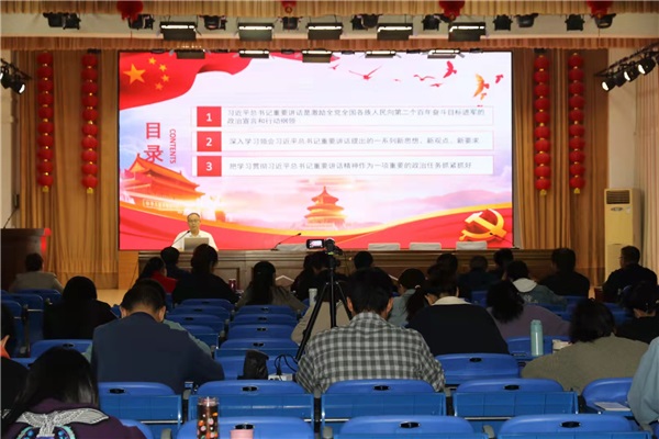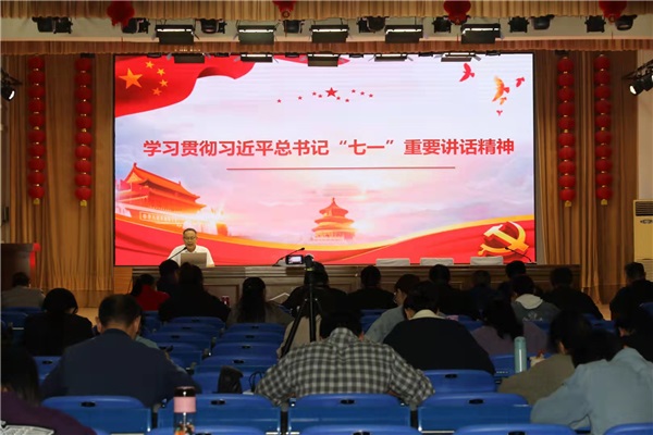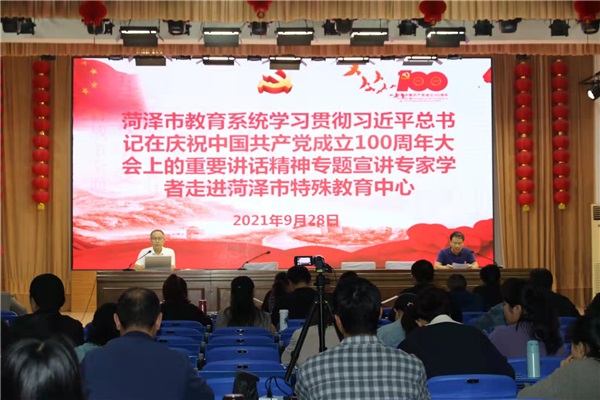 為深入學(xué)習貫徹習近平總書記在慶祝中國共產(chǎn)黨成立100周年大會上的重要講話精神,推動黨史學(xué)習教育深入開展,根據(jù)菏澤市委教育工委《關(guān)于全市教育系統(tǒng)學(xué)習貫徹習近平總書記在慶祝中國共產(chǎn)黨成立100周年大會上的重要講話精神專題宣講活動的通知》要求,2021年9月28日下午,菏澤市特殊教育中心邀請菏澤學(xué)院教師教育學(xué)院黨委副書記、常務(wù)副院長、教授陳光磊同志作“學(xué)習貫徹習近平總書記‘七一’重要講話精神”專題宣講?;顒佑牲h總支書記、校長毛丕顯同志主持,全體黨員教師共90余人參加。
