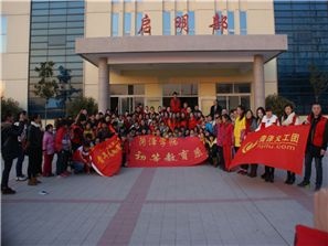 活動結束后,義工及大學生們合影留念并給學生分發(fā)了水果和食品。(文/趙娜 圖/張萌)