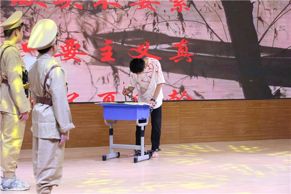本次活動主要面向?qū)W校聽障部的學(xué)生,在表演前,各班級進(jìn)行了周密的策劃,并利用課余時間認(rèn)真排練,反復(fù)練習(xí)動作、臺詞、手語等,同學(xué)們精心準(zhǔn)備服裝、道具,齊心協(xié)力開展創(chuàng)作,力求通過“演技”將文本中革命烈士的英雄氣概展現(xiàn)出來。