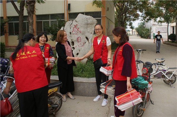 花城義工向菏澤市特教中心盲生捐獻掛歷作業(yè)本