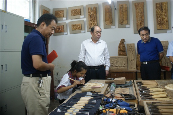 在職教樓解市長饒有興趣地參觀了職業(yè)班學生的木雕作品展并與職業(yè)班指導教師親切交談。隨后解市長一行深入教師辦公室和課堂,詳細詢問了一線教師的教學工作情況。解市長談到了特殊教育教師工作的特殊性和重要性,他說:“特殊教育是整個教育的一個組成部分,特教教師在其中發(fā)揮著重要的作用。”他稱贊特教教師點燃了殘疾孩子家庭的希望,同時對市特教中心的工作給予了高度評價,他說市特教中心作為菏澤市特殊教育的龍頭學校,近年來成績斐然,獲得了一個又一個的榮譽,為菏澤的教育事業(yè)做出很大貢獻。他寄希望于市特教中心在今后的工作中百尺竿頭更進一步,進一步提升教育教學質量,把學生培養(yǎng)好,讓更多的家庭看到希望。解市長還當場表態(tài)為市特教中心解決學校急需的教學設施改善資金。