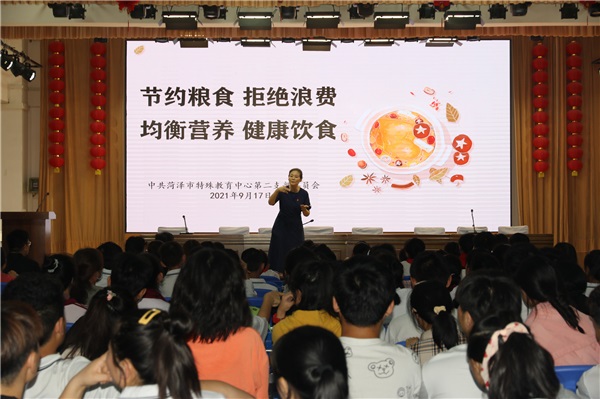 為進一步落實習(xí)近平總書記關(guān)于節(jié)約糧食的有關(guān)要求,培養(yǎng)學(xué)生節(jié)約糧食、健康飲食的良好習(xí)慣,2021年9月17日,中共菏澤市特殊教育中心第二支部委員會組織開展“節(jié)約糧食 拒絕浪費 均衡營養(yǎng) 健康飲食”主題黨日活動,支部全體黨員同志及聽障義教部和職業(yè)中專部學(xué)生在學(xué)校多功能室參加了本次活動。