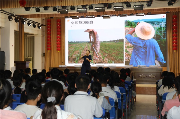 支部委員、2021年“山東省教書育人楷模”姚曉旭老師在榮譽面前不自滿,成績面前不止步,積極發(fā)揮手語業(yè)務(wù)優(yōu)勢,主動承擔(dān)起本次活動的主講任務(wù),她結(jié)合學(xué)校部分學(xué)生浪費糧食、愛吃零食的實際情況,用簡單樸實的話語、直白易懂的手語,讓學(xué)生們知道糧食來之不易,明白珍惜糧食的重要性,從而做到愛惜糧食、拒絕浪費,同時教給學(xué)生們分辨垃圾食品與健康食品的方法,使他們懂得吃潔凈、營養(yǎng)豐富的食物才有利益身體健康和身體發(fā)育。第二黨支部其他黨員教師也分散坐在同學(xué)們中間,配合姚老師的講解,為各年級聽障學(xué)生答疑解惑