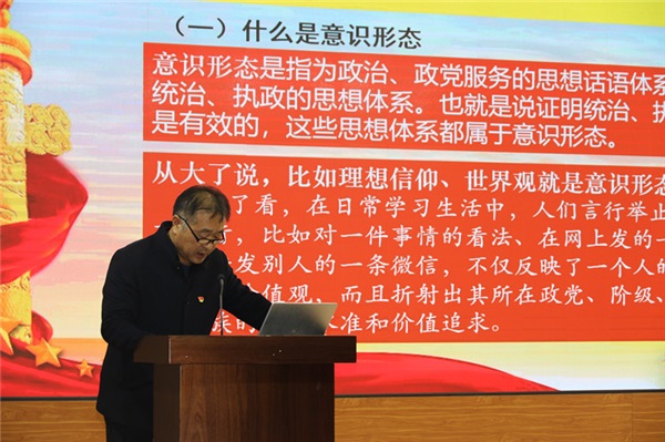 張士良同志圍繞“正確理解意識形態(tài)工作責任制”、“為什么強化意識形態(tài)工作責任制”以及“如何落實好意識形態(tài)工作責任制”三個方面,深入剖析了意識形態(tài)工作的極端重要性,并結合中外典型事例和學校實際情況,分析了意識形態(tài)工作在教育教學中發(fā)揮的具體作用。對于如何落實好意識形態(tài)工作責任制,張士良同志提出三點要求:一是強化政治紀律,提高認識。深刻認識到意識形態(tài)工作責任制的極端重要性;二是強化責任擔當,履職盡責。堅持黨對學校工作的絕對領導,加強意識形態(tài)鑒別力;三是強化陣地意識,嚴格管控。認真學習貫徹習總書記關于意識形態(tài)工作重要指示精神,壓實主體責任,認真貫徹黨管意識形態(tài)原則。