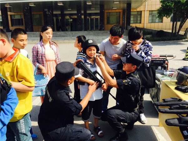 “六一”前夕,菏澤公安局牡丹分局的警察利用假期接送盲聾生到警營,讓他們體驗(yàn)坐特警車、觸摸警用設(shè)備、看特警訓(xùn)練、聽拒絕毒品知識講座、合唱國歌等,讓學(xué)生們親身體驗(yàn)了一把警營生活。