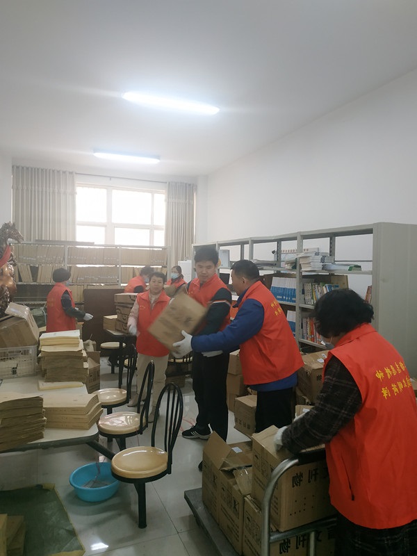 下午四點(diǎn),志愿者們準(zhǔn)時(shí)來(lái)到校圖書閱覽室,在圖書管理員耐心指導(dǎo)下進(jìn)行了明確的分工。隨后,志愿者們紛紛忙碌起來(lái),有的負(fù)責(zé)進(jìn)行拆包、有的負(fù)責(zé)用推車運(yùn)送到指定位置,有的負(fù)責(zé)對(duì)圖書進(jìn)行分類排序。其中年過(guò)五旬的吳建梅老師忍受著腰疼的毛病依然奮斗在整理圖書一線,沒(méi)有絲毫的退縮,她的精神,燃起了大家更多的工作熱情。最后在大家的共同努力下,雜亂無(wú)章的盲文書籍也整齊的排列在書架上。