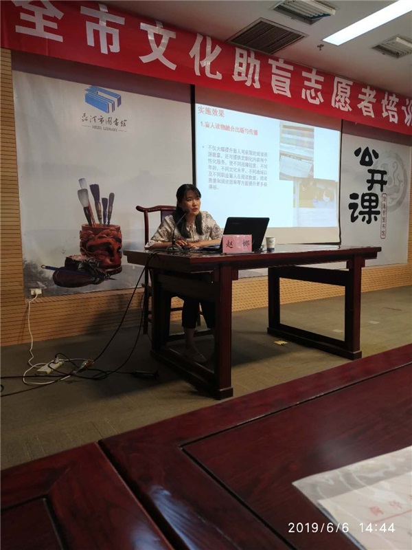 為踐行社會主義核心價值觀,推動文化助盲志愿服務(wù)常態(tài)化、專業(yè)化和有效化發(fā)展,菏澤市圖書館特邀請我校石秋芝、趙娜兩名教師來館進(jìn)行文化助盲志愿服務(wù)培訓(xùn)活動。