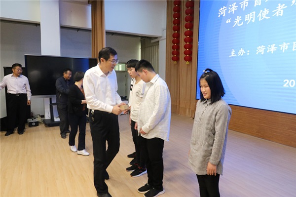 為迎接即將到來(lái)的全國(guó)第29個(gè)助殘日,2019年5月13日下午,我校在三樓多媒體教室舉辦助殘日活動(dòng)。菏澤市文化和旅游局黨組成員菏澤市圖書館館長(zhǎng)張朝永,副館長(zhǎng)呂曉娟,特教中心校長(zhǎng)毛丕顯及全體師生,“光明使者”志愿團(tuán)體志愿者代表以及菏澤學(xué)院39名見習(xí)教師出席了本次活動(dòng)。