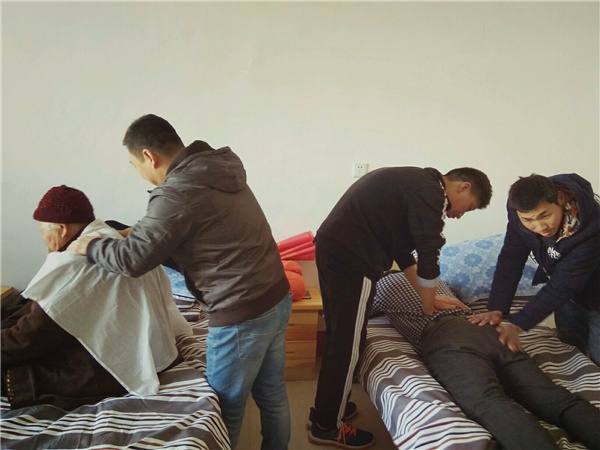 2017年3月1日,伴隨著和煦的春風(fēng),花都特教志愿服務(wù)隊(duì),在市特教中心盲數(shù)學(xué)組的帶領(lǐng)下,攜盲職業(yè)一年級(jí)和盲職業(yè)二年級(jí)全體學(xué)生,來(lái)到了趙水洼社區(qū),為社區(qū)的老人們進(jìn)行免費(fèi)推拿按摩。志愿活動(dòng)期間,師生與社區(qū)老人就保健養(yǎng)生合理運(yùn)動(dòng)等健康話題進(jìn)行了交流,并給老人們合理的建議,一副其樂(lè)融融的景象。社區(qū)老人并表達(dá)了希望可以常來(lái)的愿望,今后我們還會(huì)繼續(xù)關(guān)注社區(qū)老人,給以力所能及的幫助。