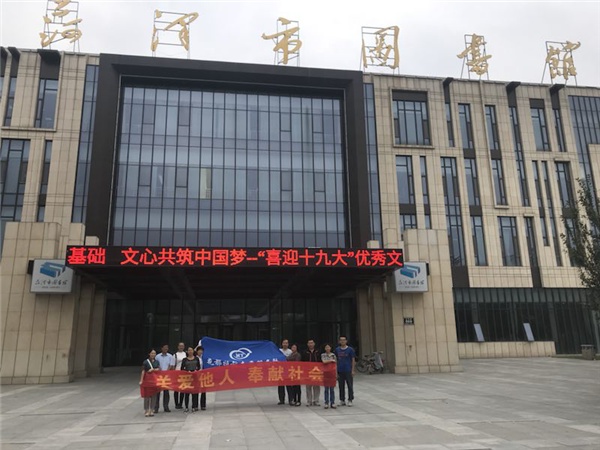 喜迎十九大勝利召開,花都特教志愿者攜手走進(jìn)市圖書館,為深秋的圖書館送上一抹暖流。本次活動由聾數(shù)學(xué)組全體成員參加,他們準(zhǔn)時(shí)在市圖書館門口集合,與圖書館工作人員進(jìn)行溝通交流后,按照管理人員的分配,三個(gè)小分隊(duì)各自進(jìn)入相應(yīng)借閱室開始圖書上架及整理工作,通過工作人員的詳細(xì)講解及現(xiàn)場演示,大家不僅學(xué)習(xí)了快速查找圖書的方法,更掌握了圖書分類上架整理的技巧。經(jīng)過兩個(gè)小時(shí)的分工協(xié)作,同志們不怕辛苦,將一本本凌亂的書籍?dāng)[放整齊,被錯(cuò)放的書也找到了自己的家。