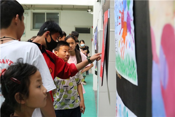 “525”諧音為“我愛我”,意在讓學(xué)生懂得關(guān)愛自我接納自我,關(guān)注自我的心理健康。在學(xué)校心理健康教師朱金鳳的指導(dǎo)下,學(xué)校聾部的同學(xué)們?cè)谇捌趪@心理健康日制作出了內(nèi)容豐富多彩的海報(bào)?;顒?dòng)上午,同學(xué)們來到掛滿海報(bào)的展覽區(qū),認(rèn)真仔細(xì)地欣賞著每一幅作品,時(shí)不時(shí)地還與身邊的同學(xué)用手語討論一番。每位同學(xué)手中都握著笑臉貼紙,在看過之后他們可以將貼紙貼在喜歡的作品下面。活動(dòng)上的每一幅作品都是同學(xué)們精心設(shè)計(jì)的,他們將自己對(duì)于心理健康方面的知識(shí)和理解用圖文并茂的形式呈現(xiàn)了出來。