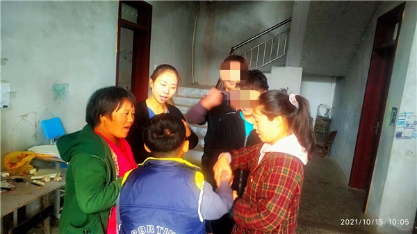 據(jù)了解聽障部五年級學(xué)生馮*宇學(xué)習(xí)上存在很大困難,并與同班同學(xué)發(fā)生了矛盾,已經(jīng)一個(gè)星期沒來學(xué)校上課。第二黨支部書記王懷寧同志得知此事后,召集第一黨小組成員結(jié)合學(xué)生的班主任進(jìn)行研究討論,制定出有效化解學(xué)生矛盾,緩解孩子畏學(xué)心理的方法策略。2021年10月15日上午九時(shí),第一黨小組成員政教處主任劉群立同志,黨小組組長、心理教師朱金鳳同志及聽障部五年級班主任劉秋月老師帶著本班學(xué)生一行驅(qū)車前往定陶馮*宇家中進(jìn)行家訪,勸其擺脫恐懼和畏學(xué)心理,重拾學(xué)習(xí)信心,爭取早日回歸課堂。
