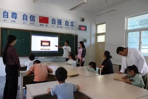王俊芝同志深入盲六年級(jí),正在帶領(lǐng)全班學(xué)生認(rèn)真學(xué)習(xí)“紅色革命小故事十則”內(nèi)容,張魯民同志和任建麗同志正在積極參與此次活動(dòng)。