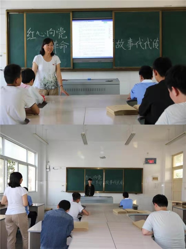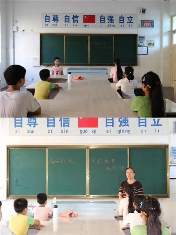 葛慧杰同志正在對(duì)盲八年級(jí)學(xué)生講述“草原英雄小姐妹、少年游擊隊(duì)”的紅色愛國(guó)故事,其他黨員同志正在認(rèn)真學(xué)習(xí)!