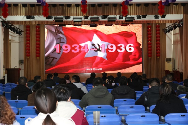 電影《紅旗漫卷西風(fēng)》是一部集思想性、藝術(shù)性、生動(dòng)性于一體的中共黨史優(yōu)秀影像作品,展現(xiàn)中國工農(nóng)紅軍波瀾壯闊長征歷史畫卷的重大黨史題材紀(jì)錄片,通過四渡赤水、巧渡金沙江、強(qiáng)渡大渡河、飛奪瀘定橋、爬雪山、過草地等一個(gè)個(gè)感人的革命故事,以視頻資料、革命遺址拍攝、老紅軍后人訪談等形式,生動(dòng)再現(xiàn)了崢嶸歲月里中國共產(chǎn)黨及其領(lǐng)導(dǎo)下的中國工農(nóng)紅軍為民族獨(dú)立和人民解放不畏艱險(xiǎn)的鮮活形象,展現(xiàn)了中國共產(chǎn)黨及中國工農(nóng)紅軍非凡的智慧和大無畏的英雄氣概,深刻揭示了沒有那段艱苦卓絕的歲月就沒有我們今天幸福生活這一顛撲不破的真理。觀看過程中,黨員教師們對革命先烈的智慧與情懷贊嘆不已!