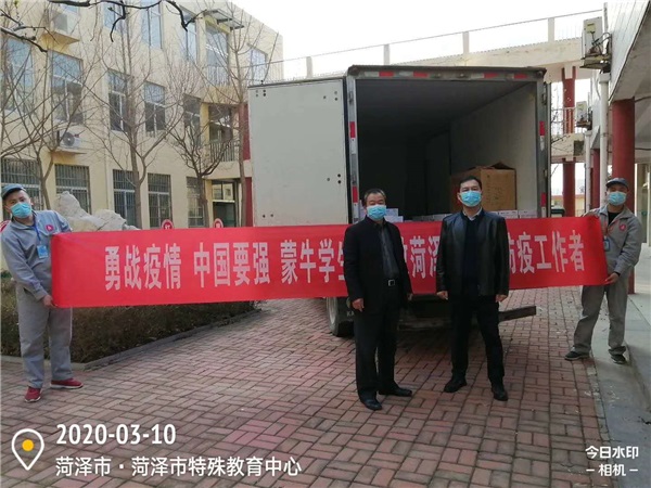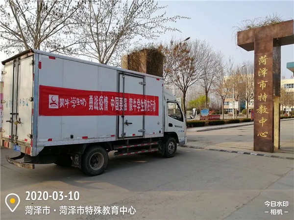 面對疫情,更顯真情。2020年3月10日下午,蒙牛學生奶菏澤推廣中心向市特殊教育中心捐贈一批抗疫防控物資,包括400只口罩、100個消毒噴壺及333箱牛奶。市特殊教育中心黨總支書記、校長毛丕顯及相關負責人接受了捐贈。